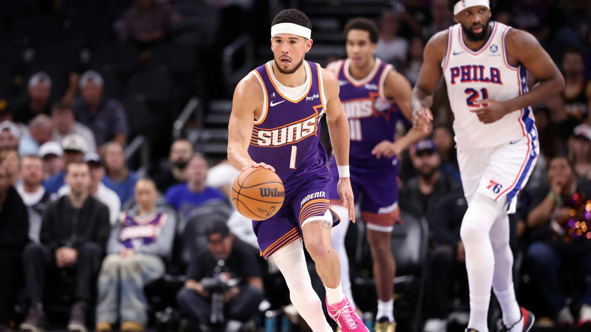 Букер пропустит как минимум одну неделю из-за растяжения правого бедра. Девин Букер пропустит как минимум одну неделю из-за растяжения правого бедра, которое произошло в матче с “Сан-Антонио Спёрс” в четверг.